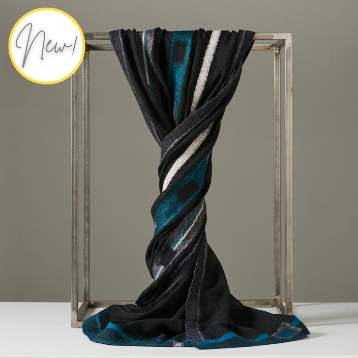 The LAVA collection was inspired by one very powerful element: lava. The designs are a contradiction of soft and elegant silk and wool combinations against stronger ones. The choice of the cotton base fabric in black and the geometric designs made of wool highlight their raw, yet sophisticated character.