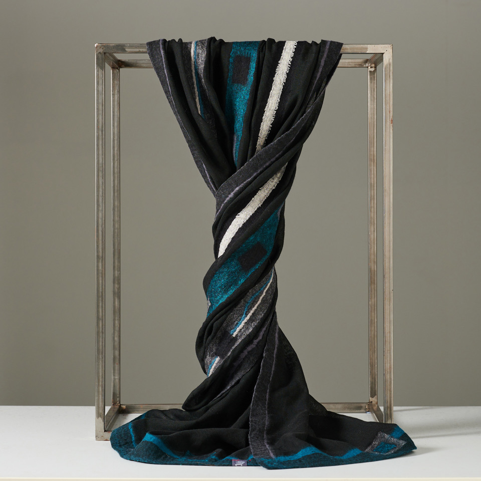 Based on slow fashion principles, each piece is handmade using the Nuno felting technique. Made from premium fabrics and with special attention to finishing details, they are luxuriously soft, lightweight and exquisitely textured.