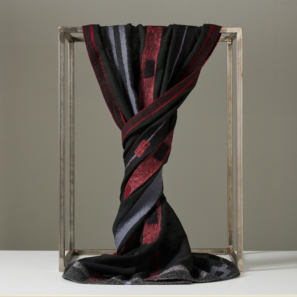 Based on slow fashion principles, each piece is handmade using the Nuno felting technique. Made from premium fabrics and with special attention to finishing details, they are luxuriously soft, lightweight and exquisitely textured.