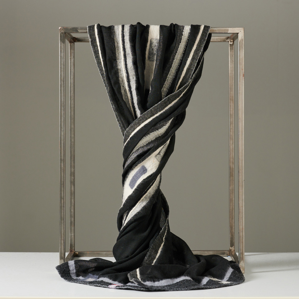 Based on slow fashion principles, each piece is handmade using the Nuno felting technique. Made from premium fabrics and with special attention to finishing details, they are luxuriously soft, lightweight and exquisitely textured.